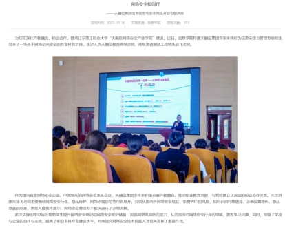 4.4.4天融信集团信息安全专家来我校开展专题讲座