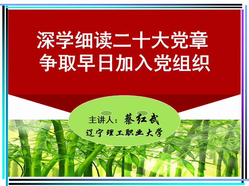 蔡红武以《深学细读二十大党章,争取早日加入党组织》为题,围绕“认真学习《党章》,掌握基本内容;严格遵守《党章》,争做优秀共产党员”等方面带领全体学员深入学习了二十大新修改的《中国共产党章程》。她以二十大通过新党章修正案为落脚点,从党章的概要、党章的修正历史、新党章的总纲和部分党章条文四个部分为入党积极分子们深入讲解新党章。她强调,习近平总书记提出的“认真学习党章,严格遵守党章”不仅仅是每一位党员应该做到的,也是我们这些希望被组织吸收的入党积极分子应该谨记于心的。