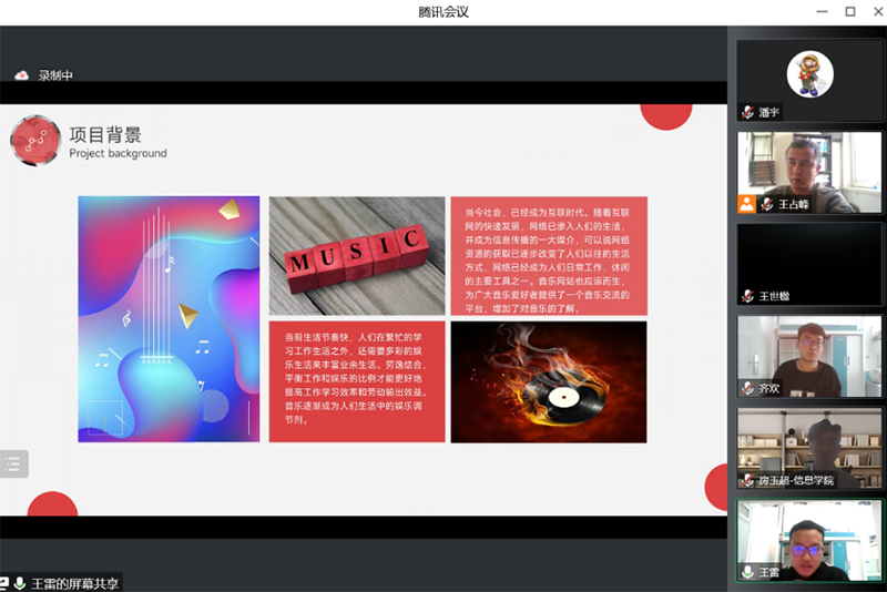 在答辩过程中,各小组详细介绍了项目分工情况、项目设计和完成情况,并现场进行演示,分析总结了各自项目的亮点和不足,对答辩组专家提出的问题进行回答。本次答辩项目主要有商城类、音乐类、管理系统类等项目,项目内容丰富,功能全面,全面提高了同学们动手实践能力及团队合作能力。