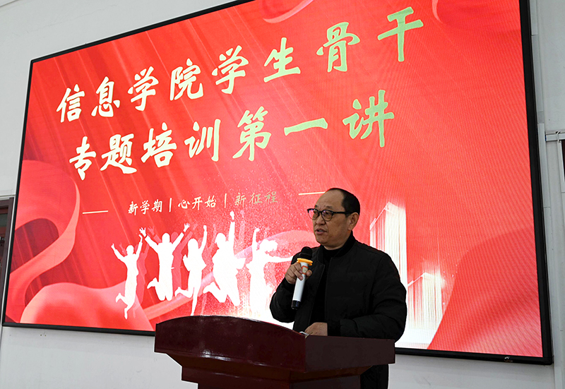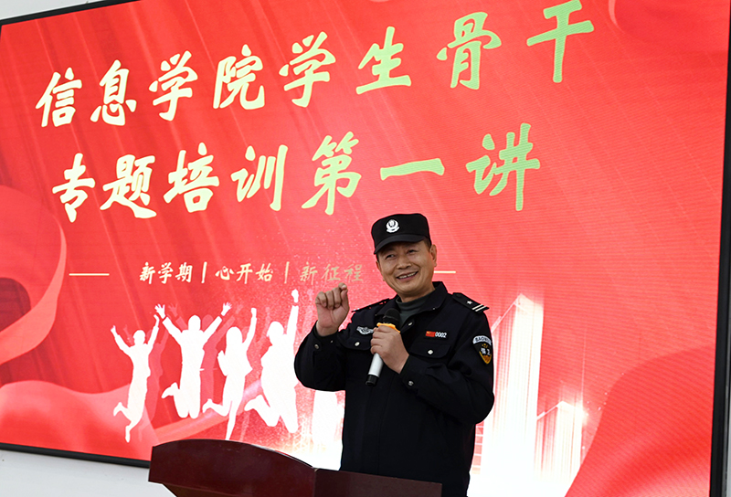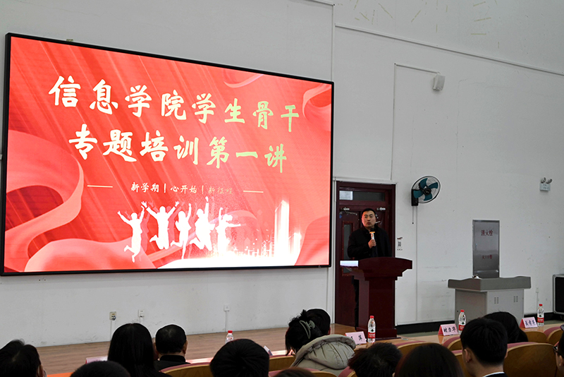 新学期伊始,信息学院按照学生管理工作的总体安排,组织第一期学生管理骨干集训,10名辅导员、43名班长、260名寝室长参加。学校时力华副校长、学生处兼就业指导处王萍处长、保卫处聂孝亮副处长、公寓管理中心何海龙主任、孙莹老师和信息学院党支部宝胜书记,分别围绕培训的目的、意义、工作方法和注意事项等方面进行集训第一课,信息学院刘世军副院长主持并做开训动员。