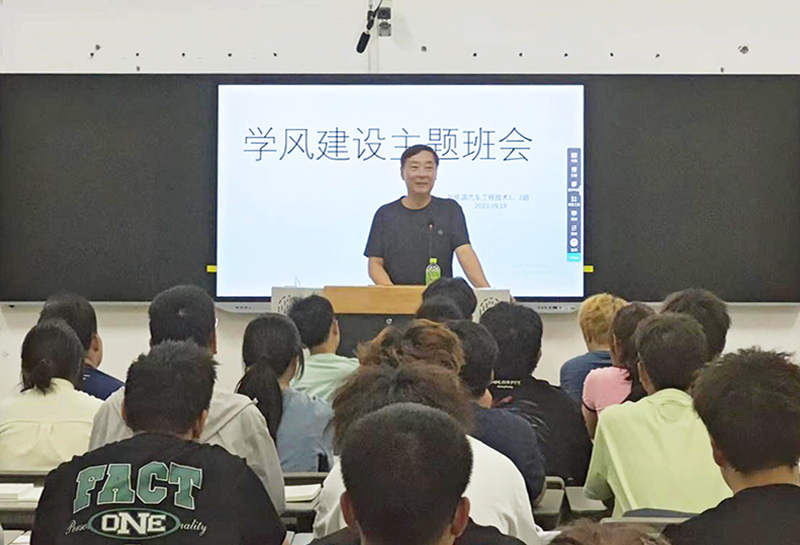 为帮助新生们在大学生活中做好职业规划,明确学习目标,2023年9月19日,汽车学院院长王少岩教授、苏航教授、汽车学院学生副院长修力轩,共同为2023级新能源汽车工程技术专业1、2班召开了学风建设主题班会。在班会上,汽车学院院长王少岩教授首先对新能源汽车专业的行业人才需求,行业发展趋势进行了总体概述,随后王院长又结合新能源汽车专业的特点、行业企业发展人才需求,向学生们深入解读了本专业的培养目标定位和人才培养模式。