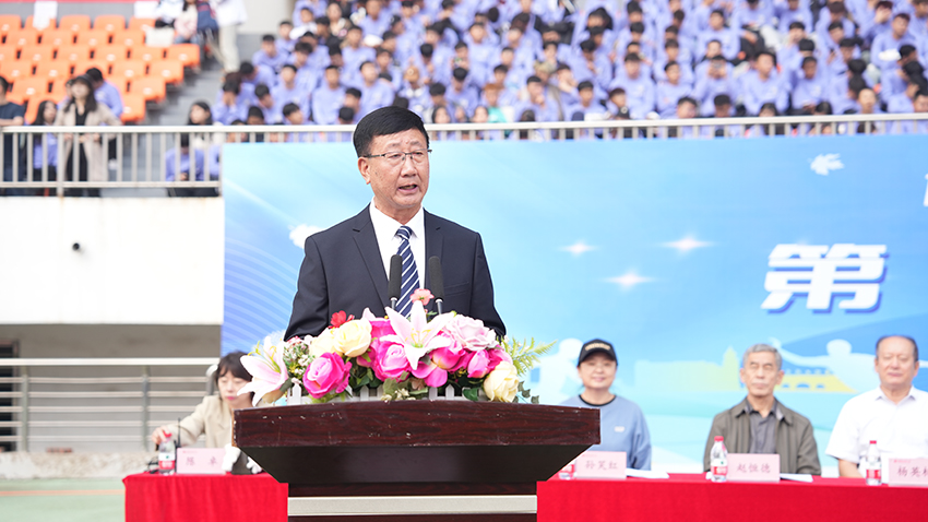 副校长时力华致闭幕词。他代表大会组委会向全体裁判人员、工作人员、学生志愿者表示诚挚的谢意,向斩获各项荣誉的个人和集体表示热烈的祝贺,向所有参与、关心、服务本届运动会的师生员工表示崇高的敬意!