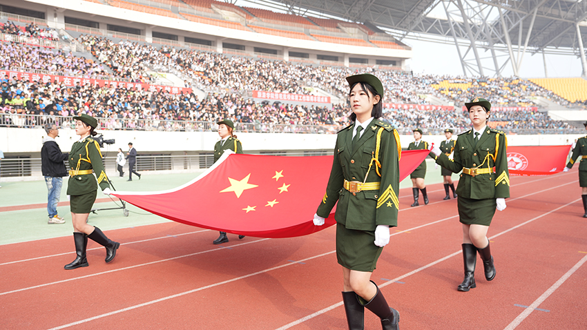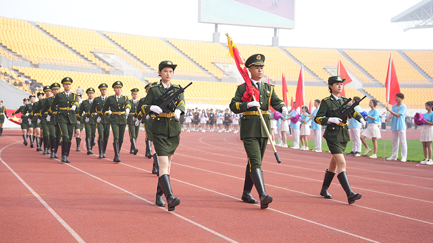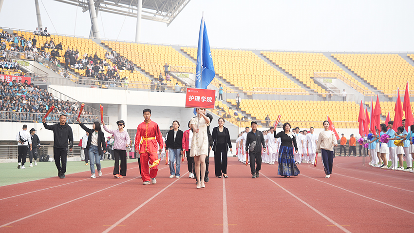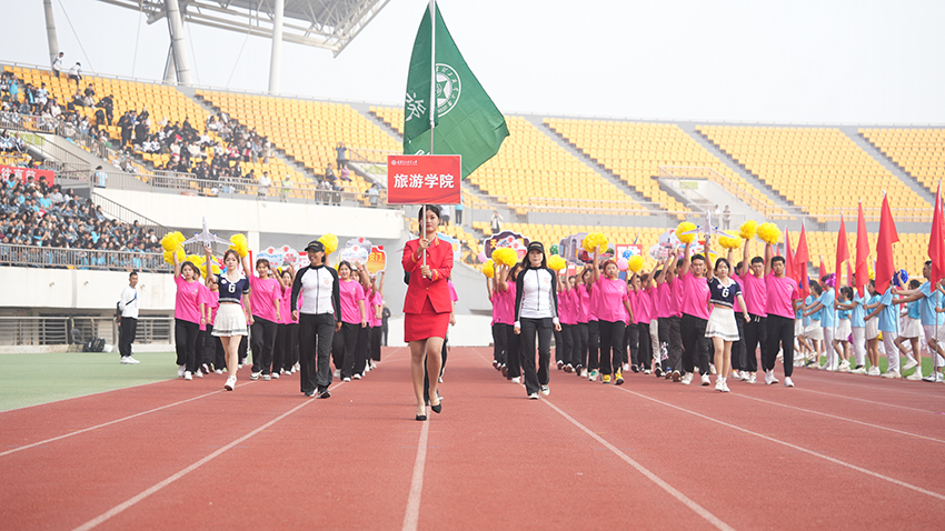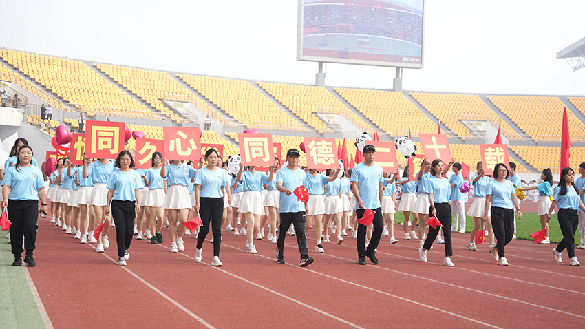 8时整,国旗队、校旗队、花环队、各学院学生与教工运动员方队依次入场。他们士气高昂,步伐整齐,口号嘹亮,充分彰显出我校师生昂扬向上、勇往直前的精神风貌。