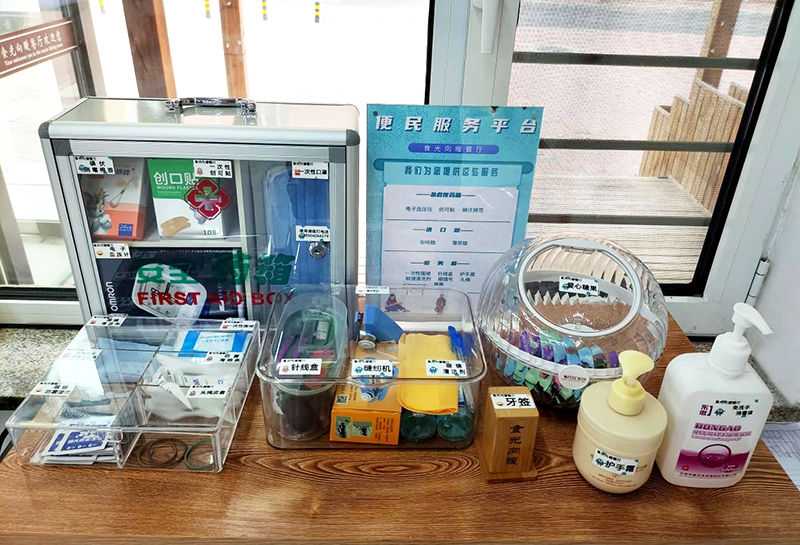 据了解,为给师生们提供“安全、健康、美味、温馨”的餐饮服务,后勤服务中心食品管理科于12月5日,在南北校区“食光向暖”餐厅建立了便民服务台,免费提供12把雨伞,爱心糖果5斤,头绳、一次性围裙、眼镜清洁布、护手霜、一次性口罩、创可贴、血压计等物品800余件,加强与师生的交流互动,让师生们在用餐过程中感受到家的温馨和快乐。