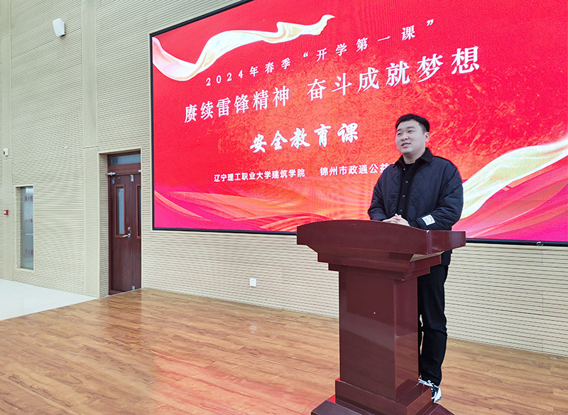 未雨绸缪、防患未然是安全教育不变的基石;保障生命、尊重生命是安全教育不变的主题。只有重安全、常防护,才能确保平安。为进一步提高学生的安全意识,结合《辽宁理工职业大学“赓续雷锋精神 奋斗成就梦想”2024年春季“开学第一课”活动方案》具体内容,学院邀请锦州市红十字政通救援服务队来校为学生上了一堂生动的安全教育课,学院全体辅导员与学生代表参加,课程由团总支书记温涛老师主持。
