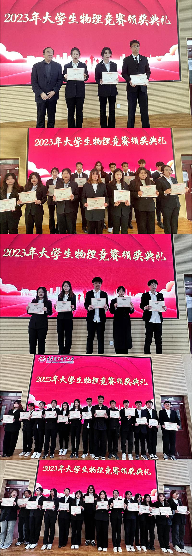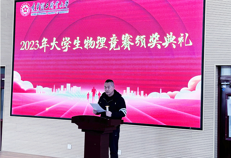基础部副主任姜欢宣读了我校在2023年参加国家和省各级物理竞赛成绩。与会嘉宾分别为获得2023年辽宁省大学生物理竞赛奖项的同学颁奖。