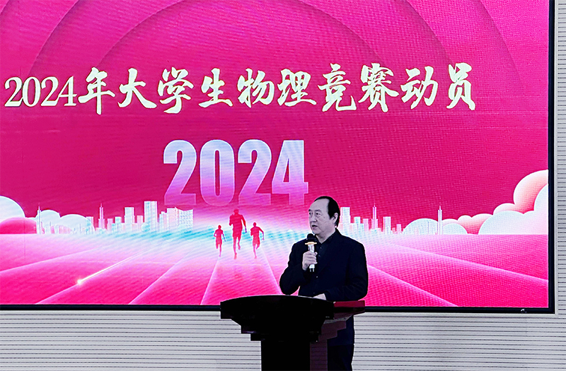 基础部党支部书记杨志宣读了2024年大学生物理竞赛通知并进行了动员。杨书记强调了参与竞赛的重要性,勉励同学们积极报名,挑战自我,不断提升自己的物理学科素养。