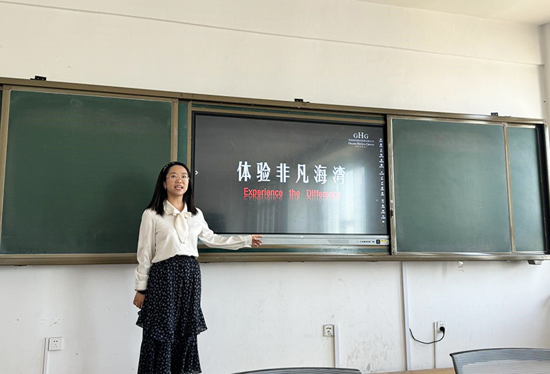 北京半山海湾大酒店人力资源部经理胡明星给学生们介绍了海湾酒店的概况,从珠海到北京,再到成都,经过二十余年的积淀和创新,海湾大酒店已成为行业知名的五星级酒店。胡经理又介绍了北京半山海湾酒店的发展历程,力求给学生们一个没有天花板的舞台。