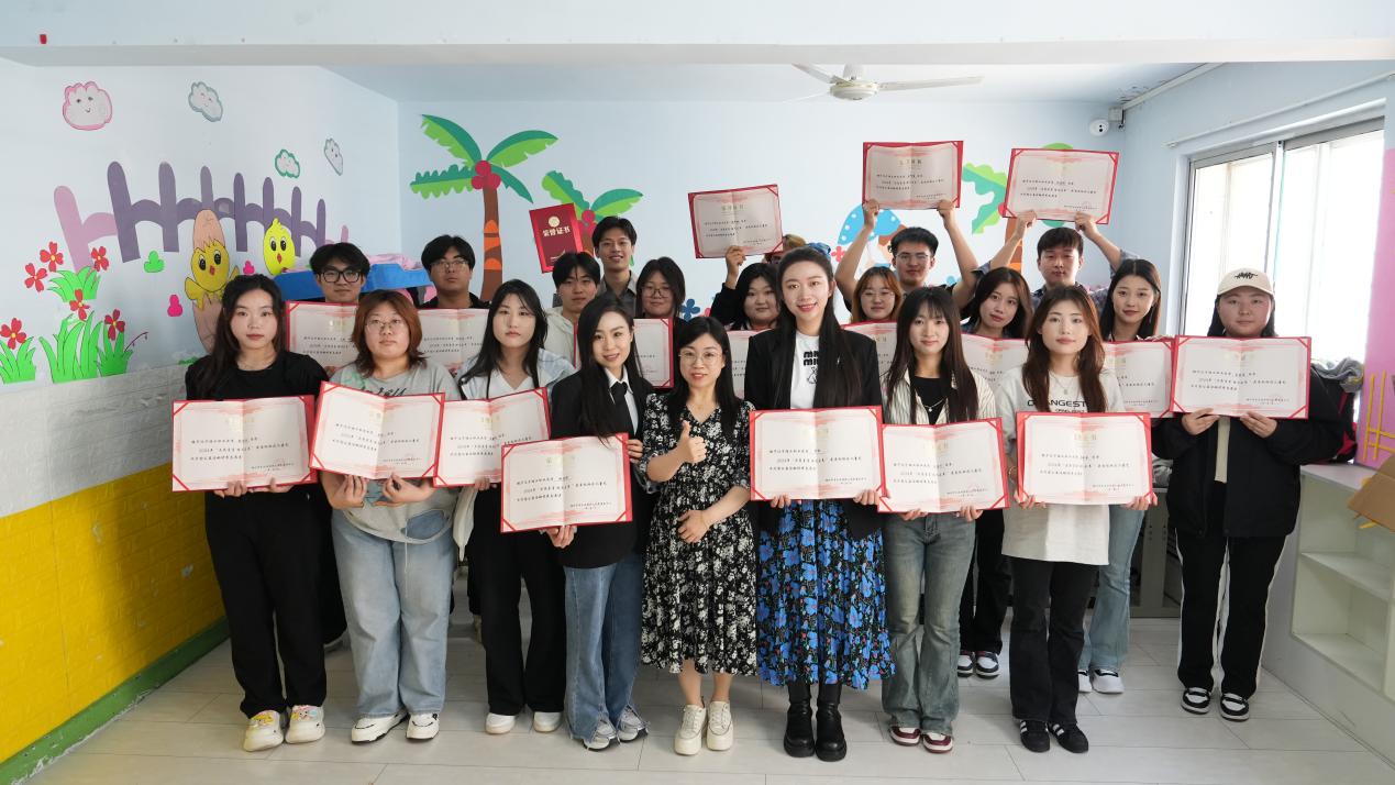 在活动中,志愿者们通过自己的不断示范,来引导小朋友完成一个个动作,他们的笑声成为了这里最动听的旋律,理解与接纳在活动中生根。活动最后,志愿者们为每一名儿童送上画材套盒、孤独症儿童专用卡片书及绘画用品等礼物。星乐园负责人向志愿者们颁发了本次公益活动的公益证书,表达了对他们辛勤付出的感激之情。同时,她也高度赞扬了我校的美育课程和公益活动,认为这次活动不仅锻炼了孩子们的各项能力,更让他们感受到了艺术的魅力和人生的美好。