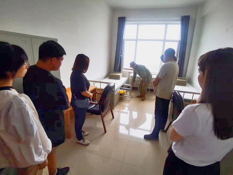 活动开展时,室外正下着雨,但军营中的战士依然井然有序,蓄势待发。首先部队领导为我们讲解了民兵部队的整体情况,随后带领我们参观了寝室,现场进行了内务整理的教学,并参观了武器装备场。学生们亲眼见证到部队整齐划一、令行禁止的作风,纷纷表示,要学习战士们吃苦耐劳的意志品质,要传承团结协作的敬业精神。教师们也深受洗礼,表示在未来的工作中要团结奋进、深耕细作地在本职岗位发光发热。