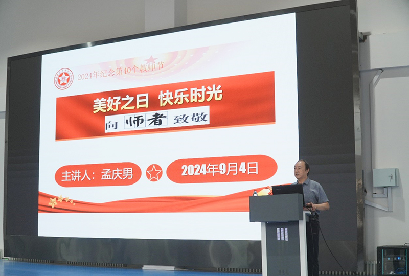 首先,校务委员孟庆男教授作了《向师者致敬》的讲座,他从历史纵深的角度,回顾了我国历代的尊师之道和教师节的由来及历史演变,阐释了教育家精神的深刻内涵及弘扬教育家精神的重大意义。关于如何弘扬教育家精神,他提出:一要坚持正确的理想信念,恪守教育为党育人,为国育才的崇高使命;二要秉承崇高的道德情操,发挥教育引领人、温暖人、凝聚人、感召人、教化人的力量;三要运用精妙的育人智慧,体现教育深入学生、深入心灵、春风花雨、润物无声的良好效果;四要保持赤城的躬耕态度,推动教育的种子在思想的园地里落地生根开花;五要筑牢真诚的仁爱之心,推动教育回归本真,回归本分,回归本位;六要树立端正的价值取向,激活教育传道向美、春风化人的内在动力;七要在不辜负“老师”这一光荣称号的同时,努力做“经师”和“人师”相统一的“大先生”,促进学生全面发展。他深情寄语各位教师要将教育家精神内化于心、外化于形,爱国、立德、育人、躬行、弘道,做最好的自己。
