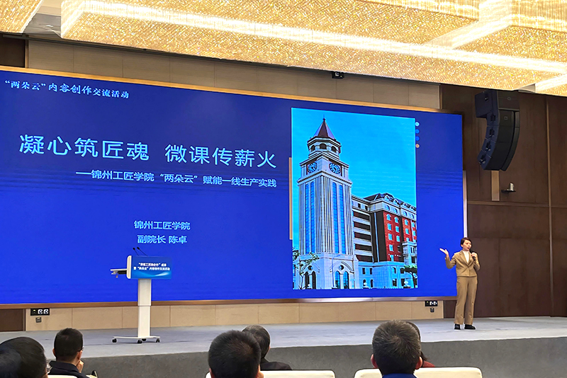 第二天的大会上,我校副校长兼工会主席陈卓以《凝心铸匠魂,微课传薪火》为题,向与会领导、嘉宾及代表作展示汇报。汇报紧扣工匠学院培训的“课程体系设计、线上课程录制创新点、案例解析、应用传播机制”四个核心维度,条理清晰、内容详实,生动展现了锦州工匠学院在产业工人培训中的创新实践与显著成效,充分彰显了学院在职业培训工作中的责任担当与鲜明特色,赢得全场一致好评。