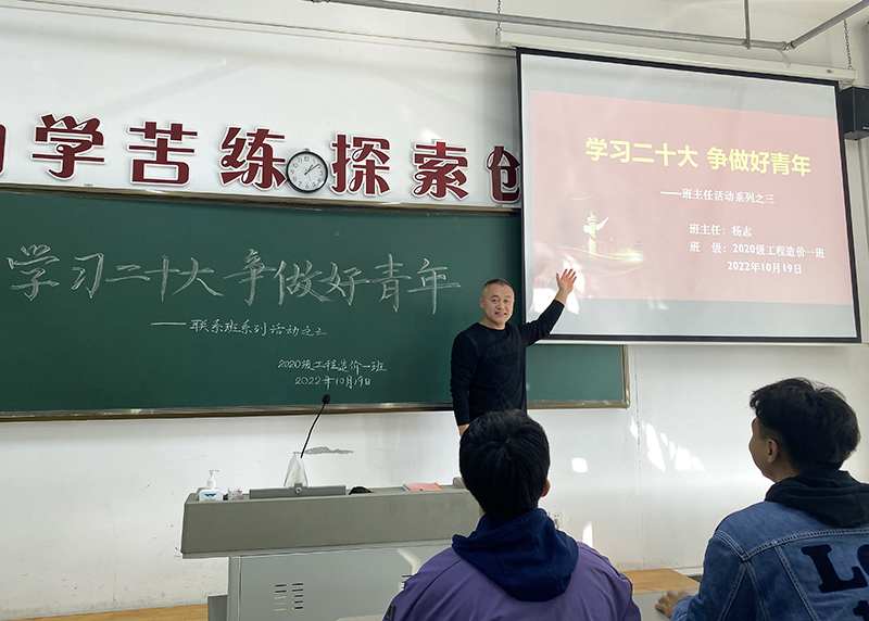 为了学习二十大报告中新论断、新思想、新目标,2022年10月19日下午2:00,班主任杨志老师组织建筑学院2020级工程造价一班在主楼505开展了以“学习二十大争做好青年”为主题的班会。
