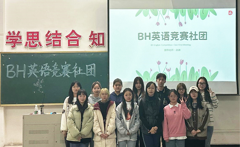 2023年4月18日晚5:30,“BH英语竞赛社团”于南校区阶梯三教室举行了首次见面会。参加本次社团见面会的有指导教师赵靖、社长王楚怡、副社长闫云浩、苏诗琪和22级社团的新成员。