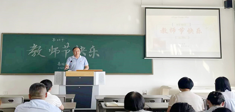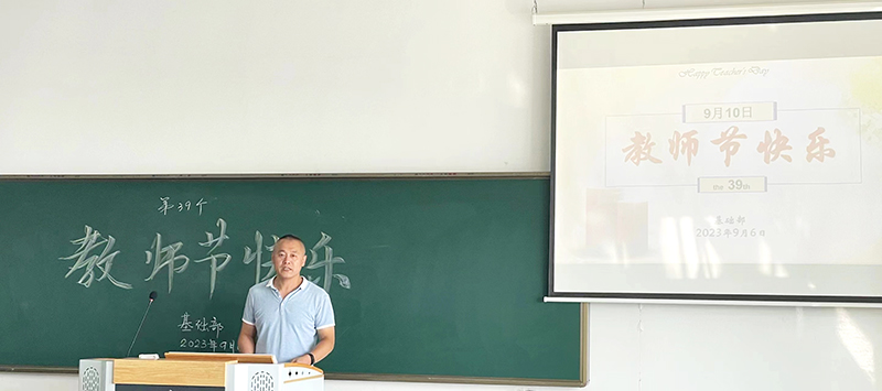 孟校长向所有教师介绍了今年教师节的主题“躬耕教坛,强国有我”。他又详细地讲述了中国教师节的由来及演变过程,并对教师们致以节日的诚挚问候和祝福。他也寄语基础部所有教师,希望大家厚植育人情怀,躬耕教学科研第一线,培养更多德才兼备的学生,为推进学校事业高质量发展接续奋斗。