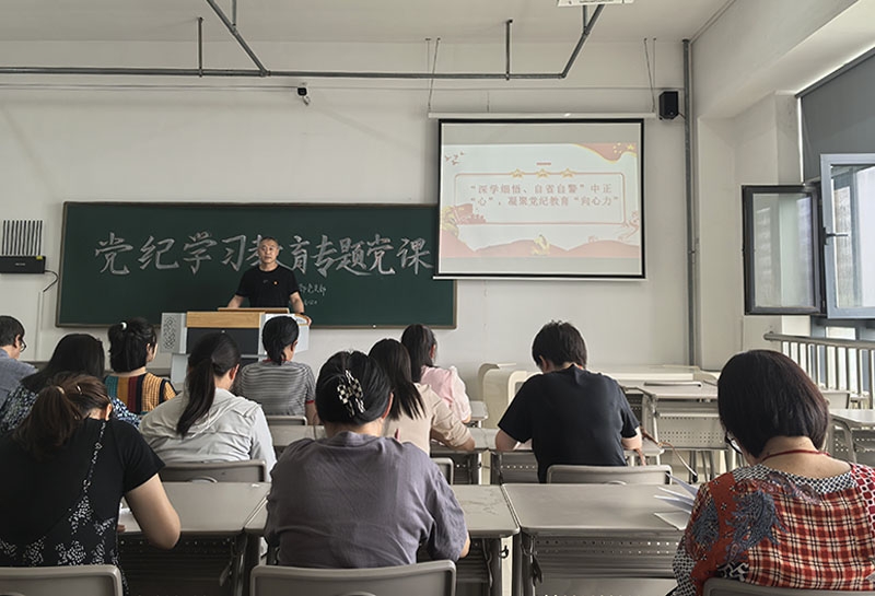 2024年7月12日下午,基础部党支部全体教师在主楼805上了一堂由杨志书记主讲的“以党纪教育正心正身正行赋能工作高质量发展”的生动党课。
