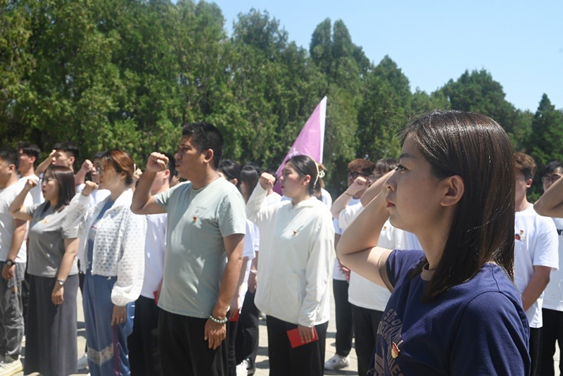 参观纪念馆前,在馆前举办仪式,辅导员老师为发展对象佩戴党徽,并颁发《中国共产党章程》。接着,机电学院团总支书记刘嘉媛老师带领新老党员、新发展对象及优秀学生代表在塔山战役纪念碑前进行宣誓。大家满怀期待,烈日下,面向党旗庄严宣誓,感受红色传统、亲近革命历史。宣誓结束后,大家参观了塔山战役纪念馆。纪念馆内,同学们跟着讲解员的步伐,了解塔山阻击战的历史。大家庄严肃穆,认真听讲,感受着这场战役背后的红色精神。