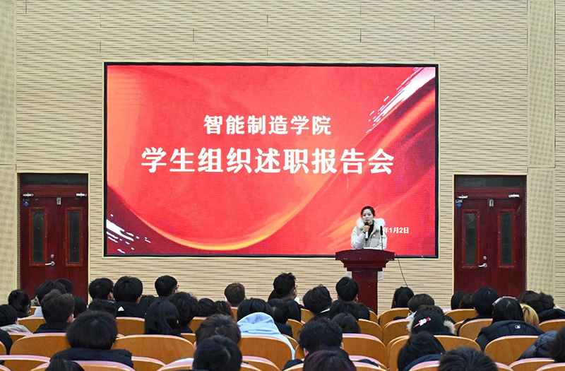 为进一步加强学生组织建设,增强学生干部服务学生能力和意识,提高学生干部队伍的整体素质,展示工作成果,分享工作经验。1月2日17时,智能制造学院在主楼一楼阶梯教室召开学生组织述职报告会,学生副院长刘嘉媛、团总支书记胡杨、全体辅导员及学生组织全体成员参加此次会议。