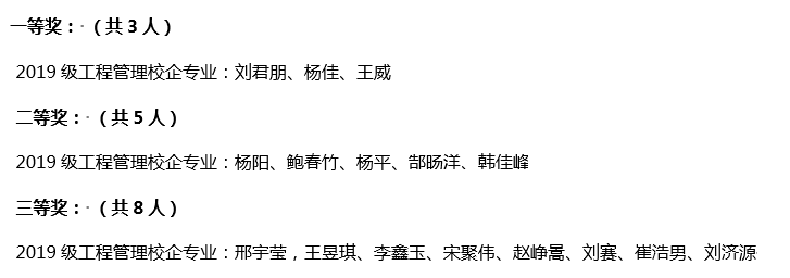 由建筑工程学院承办的2021年大学生建设工程管理形体礼仪技能竞赛于2021年6月16日圆满结束。本次竞赛共有25人参加,经过严格考核,最终评出一等奖3人,二等奖5人,三等奖8人。现将获奖名单公布如下: