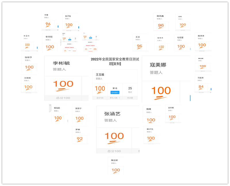 活动第二项,王老师带领大家一起参加了“2022年国家安全教育日知识测试”活动,每个人都积极认真地答题,有不少同学都取得了100分。