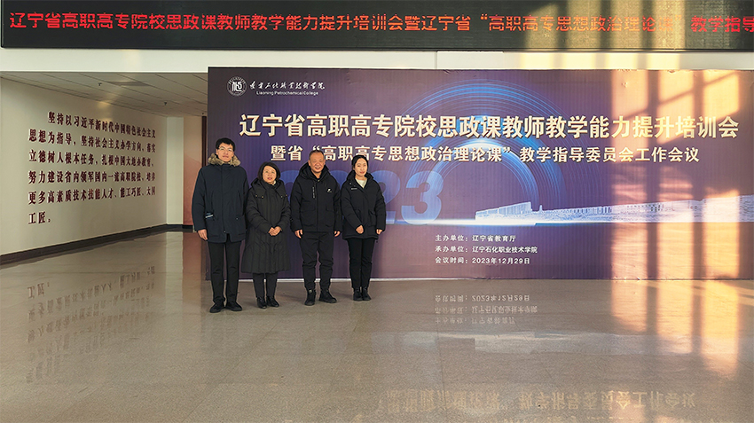 由辽宁省教育厅主办的“辽宁省高职高专院校思政课教师教学能力提升培训会于2023年12月26日,在承办单位辽宁石化职业技术学院举行。我校马克思主义学院院长张觉力,副院长孟黎,思政课教师鲍野、赵双月参加了此次培训会。