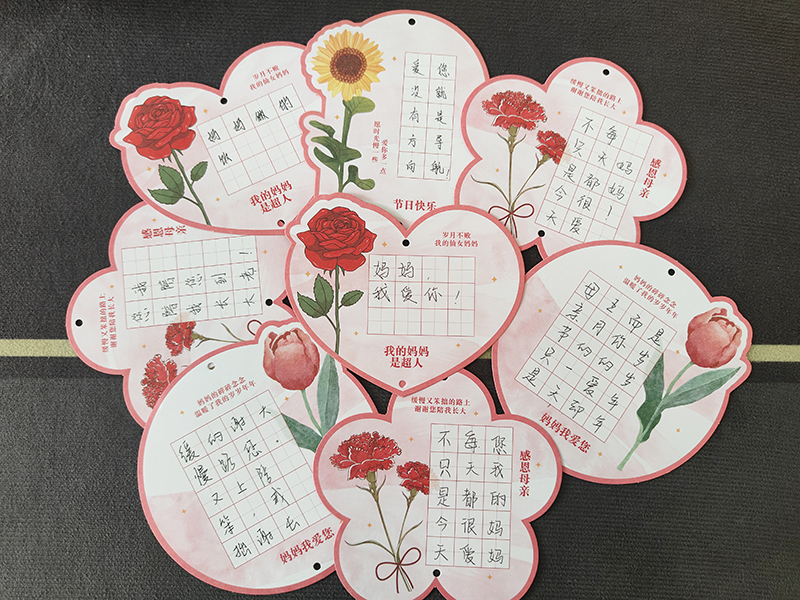 王老师为同学们精心挑选了母亲节书法作品专用纸,同学们选取了自己心仪的纸张,在专用纸上留下对母亲真挚的情感表达。