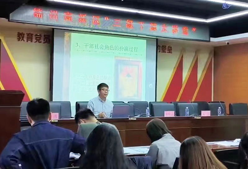 为深入贯彻落实《干部教育培训工作条例》和《辽宁省干部教育培训规划(2023-2027)》,提高干部的综合素养,培养造就政治过硬、业务精通、适应新时代要求、具备领导中国式现代化建设能力的干部队伍,锦州市高新区工委组织统战人事部依托“三级干部大讲堂”,分批对全区各级党员干部进行教育培训。5月23日,我校马克思主义学院教授徐祥运博士应邀参加干部教育培训讲座,讲座在锦州高新区大学科技园党群活动中心举行,由高新区委组织统战人事部副部长朱贺主持,来自区直属部门、工委机关、事业单位、区辖街道的党员干部和党外干部近100人参加了培训,徐祥运教授做了题为“基层干部的社会角色及其实现”的专题讲座。