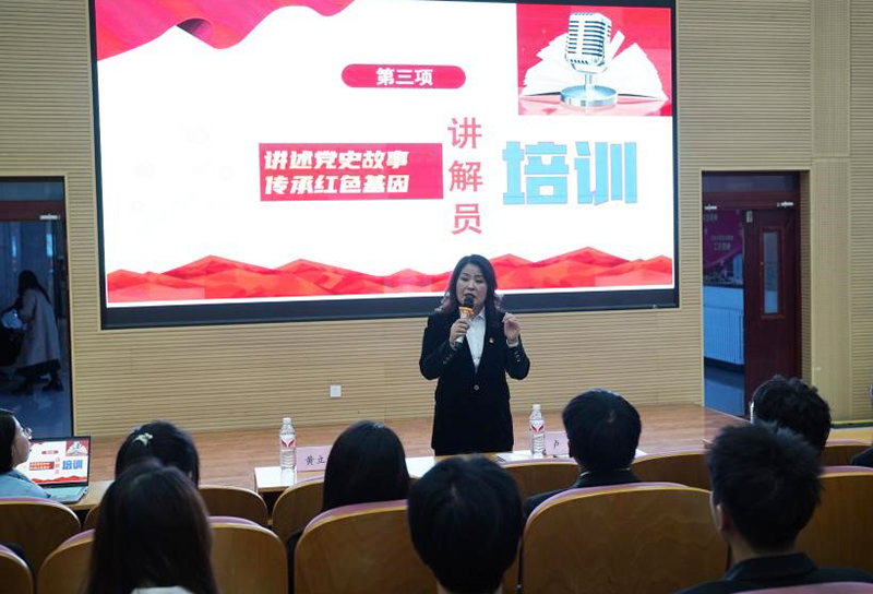 专题报告后,卢主任与赵婷婷、刘佳俊两位讲解员为我校融媒体中心红色自愿讲解员就如何做好一名讲解员做专项辅导,并与在场同学交流互动。