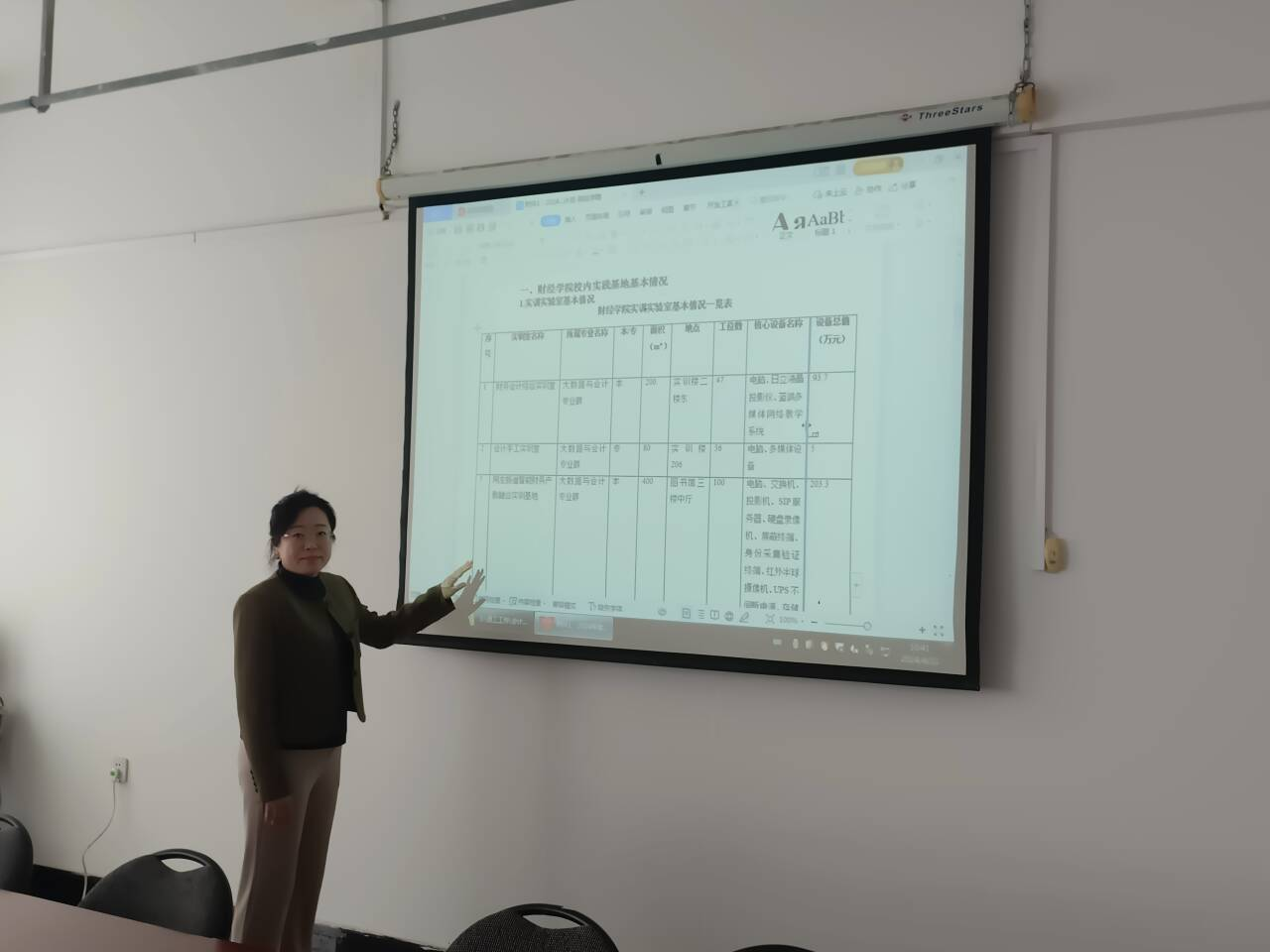 焦君主任首先介绍了实验室位置及使用情况现状,然后汇报了智能审计实训室及智慧金融实验室建设方案,实验(训)软件分批申请建议及申报询价问题等。