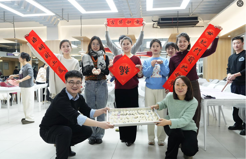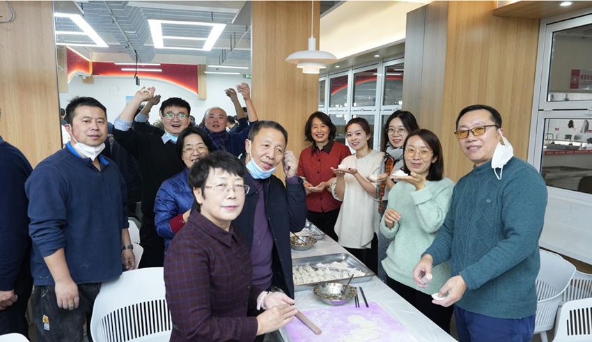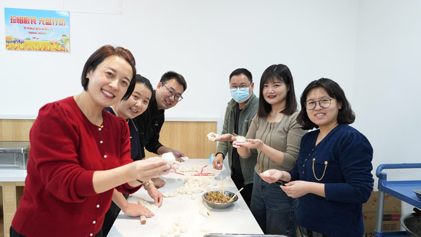 各分工会教职工积极踊跃参加包饺子活动,大家齐聚教工食堂,擀面皮,包饺子,摆盖帘屉联,分工合作,配合默契,教工们一边包饺子一边畅谈工作和生活,其乐融融,有的同志手法娴熟,有的同志巧思奇想,大家在双手灵动间,肉三鲜和素三鲜的元宝饺子、柳叶饺子、大肚饺子、花朵形饺子跃然于屉联盖帘上,每一个饺子都承载着大家的心意、巧思与创意。学校视频制作中心派出摄影摄像师,到现场记录这美好时刻。