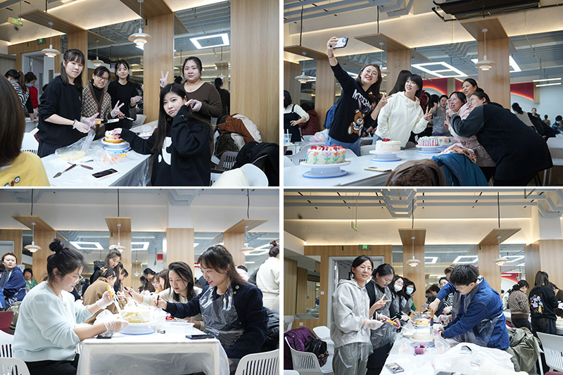 参加活动女教职工,满怀期待的心情,早早来到活动现场,现场的空气中弥漫香甜气息,女同胞们的脸上洋溢喜悦笑容。活动邀请了专业的烘焙师进行现场教学,打发奶油,讲解制作技巧,指导女教工们涂抹奶油、制作裱花。女职工们身着围裙,分成小组,组员们合理分工,有的摆放水果造型、有的涂抹奶油,还有的雕琢蛋糕造型、创作蛋糕上的节日祝福语等,在制作过程中大家发挥创造力和想象力,不断沟通,融合意见,齐心协力地将简单蛋糕胚变成一个个造型独特、色彩斑斓的蛋糕艺术品,现场的欢声笑语不断,气氛热烈融洽。