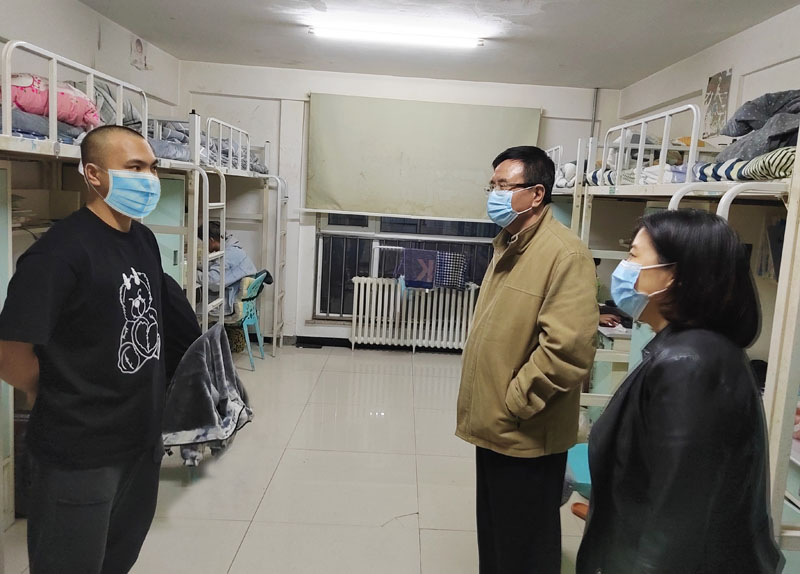 随后,时力华校长对其8名楼层包干老师的工作给予肯定,知道很多教师除本职工作外,又身兼志愿者、夜间巡逻等多项任务,对大家道一声“辛苦了”。同时提出几点意见:一是在每日走访寝室时不能一味的数“人头”,要及时了解学生思想动态,解决学生实际困难;二是在走访寝室的过程中需对学生起到一种提示,一种警示,避免学生有私自外出等违反疫情防控规定的行为;三是不要松懈,虽然疫情形势有所好转,但疫情防控工作仍要日日紧、时时紧。